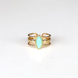 - Bague composée de 2 rangs fins et d'un rang martelé surplombé d'une pierre précieuse (amazonite)