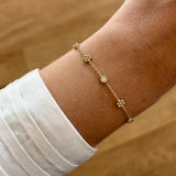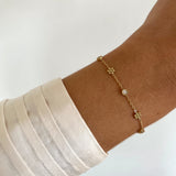 - Bracelet fin Hortense orné de 3 oxydes de zirconium et 2 fleurs