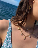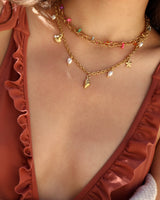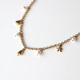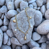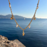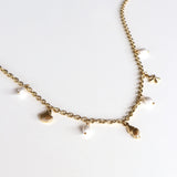 - Collier composé d'une chaine ornée de 4 perles de nacre et de pendentifs coquillages : bohème et estival