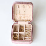 Cet écrin à bijoux en velours rose permet de ranger ses bijoux et de les emporter partout, en vacances ou en week-end. Ils seront protégés et ne s'emmêleront plus. Les compartiments de gauche sont amovibles pour plus de possibilités.