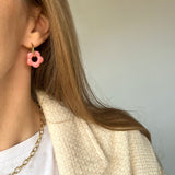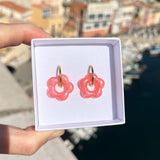 - Boucles d'oreilles composées de deux créoles et de deux fleurs rose corail interchangeables ; à mixer à l'infini. Chaque fleur est unique avec ses propres nuances et reflets. Les paires de fleurs peuvent être commandées sans créoles pour les associer à toutes vos tenues.