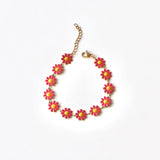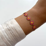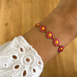 - Bracelet composé de petites fleurs rose fuschia et jaune