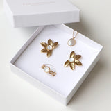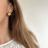 - Boucles d'oreilles asymétriques en forme de fleurs, ornées d'une pierre de nacre