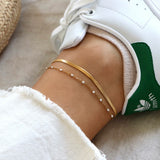 Bracelet de Cheville double or & blanc