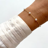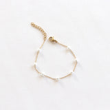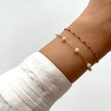 - Bracelet Le Roucas Blanc : chaine fine ornée de 8 perles nacrées (diamètre des perles : 0,4 cm)