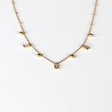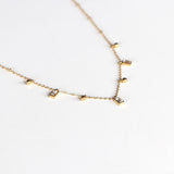 - Collier composé d'une chaine fine ornée d'oxydes de zirconium carrés et de petites perles dorées : élégant et raffiné
