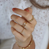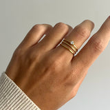 - Conseil : portez-la seule ou associez-là à d’autres bagues fines dorées