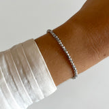 - Bracelet en perles de cristal argentées aux reflets brillants + une perle dorée