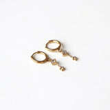 - Petites créoles dorées avec deux pendentifs : un rectangle et une petite étoile, tous deux ornés d'oxydes de zirconium
